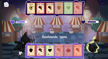 Gostei bastante do estilo de arte, a animação tambem é bem bonitinha, acho que o que eu mudaria é deixar as coisas maiores na tela e colocar mais animações nas cartas